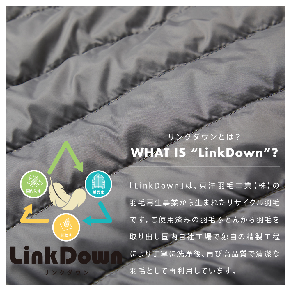リンクダウン(リサイクル羽毛)を使用し、環境にも配慮しています。