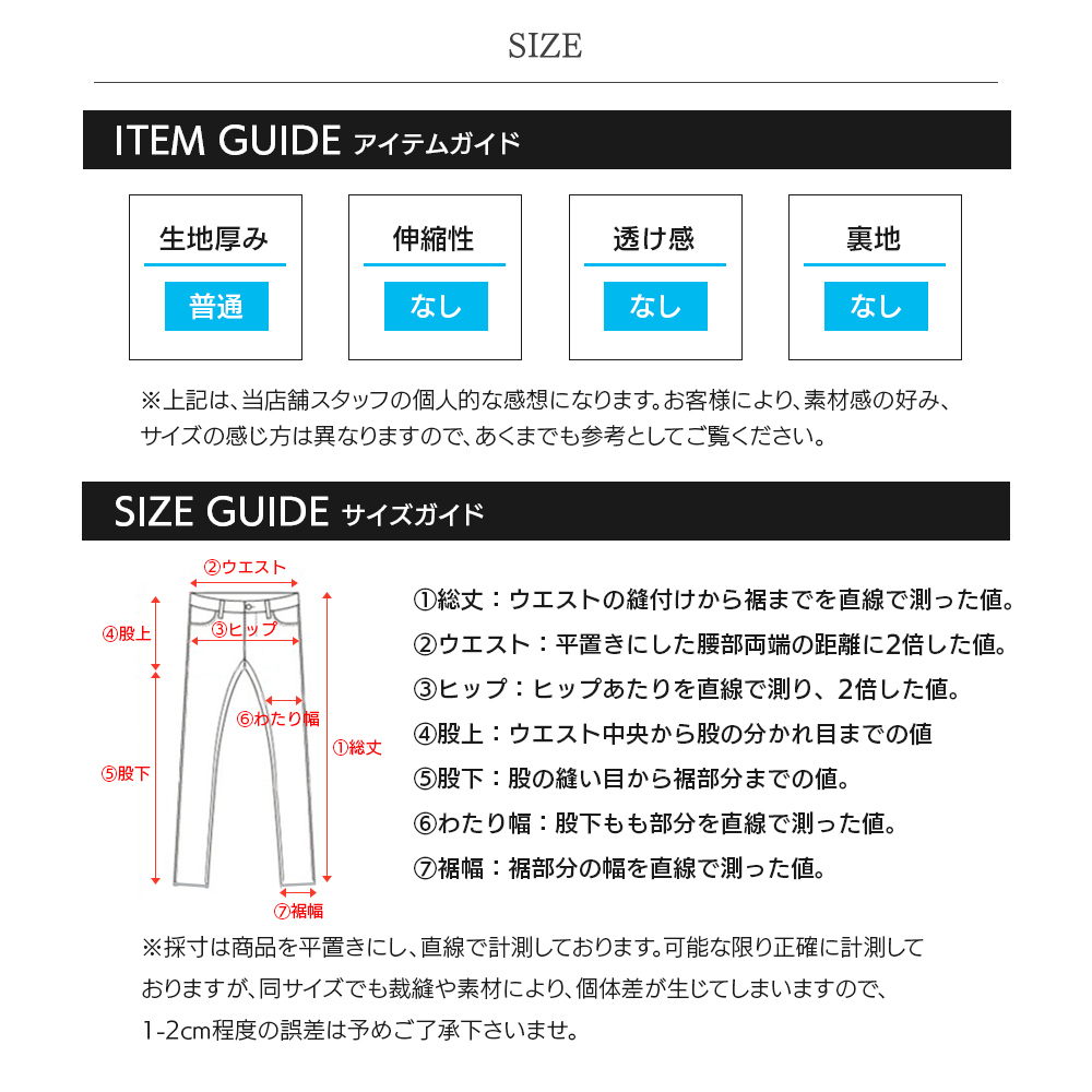 [L]総丈:95cm/ウエスト:69cm/ヒップ:110cm/股下:68cm/裾幅:20.5cm