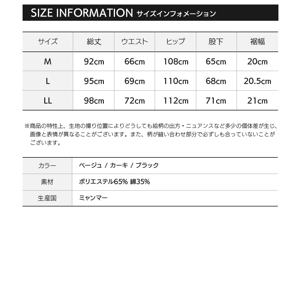 [M]総丈:92cm/ウエスト:66cm/ヒップ:108cm/股下:65cm/裾幅:20cm